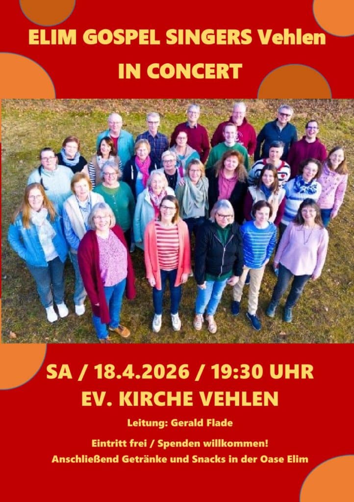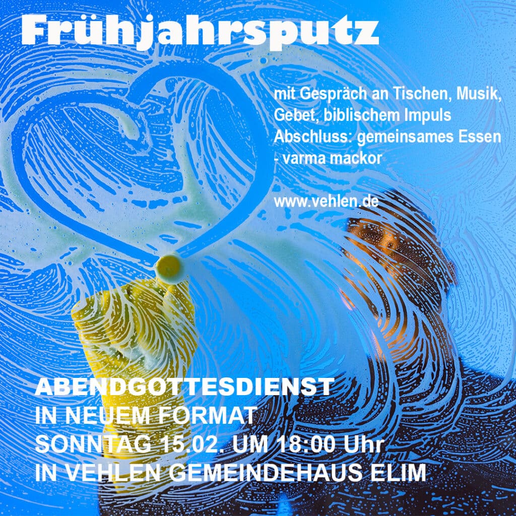 Herzliche Einladung zum Gebetstreff “AusZeit” jeden Dienstag von 18-19 Uhr in der Kirche (im Winter im Gemeindehaus Elim). Wir wollen uns Zeit nehmen für Gebet, Stille vor Gott und Hören auf ihn.