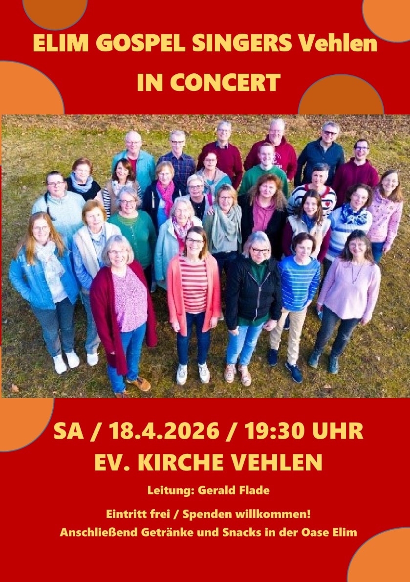 Samstag, 18. April, 19:30 Elim Gospel Singers in Concert